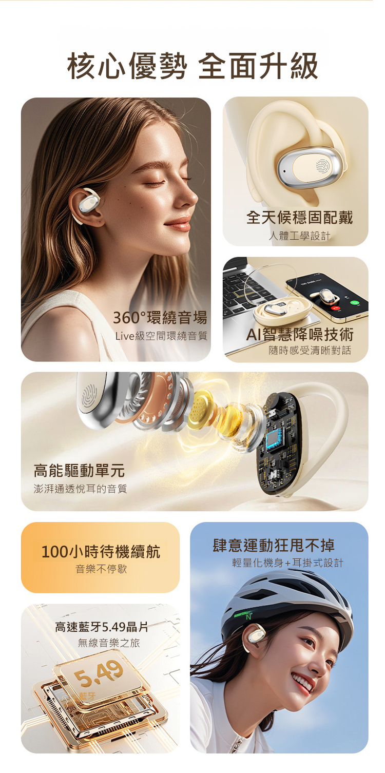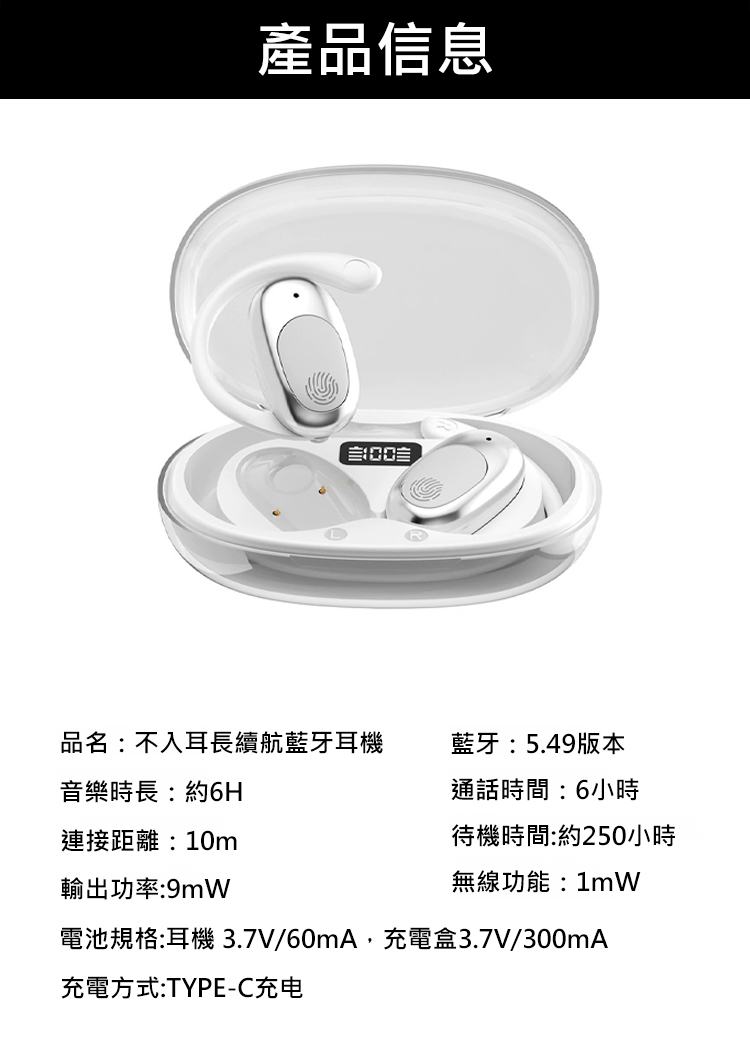 【萬元全景音】不入耳長續航力藍牙耳機